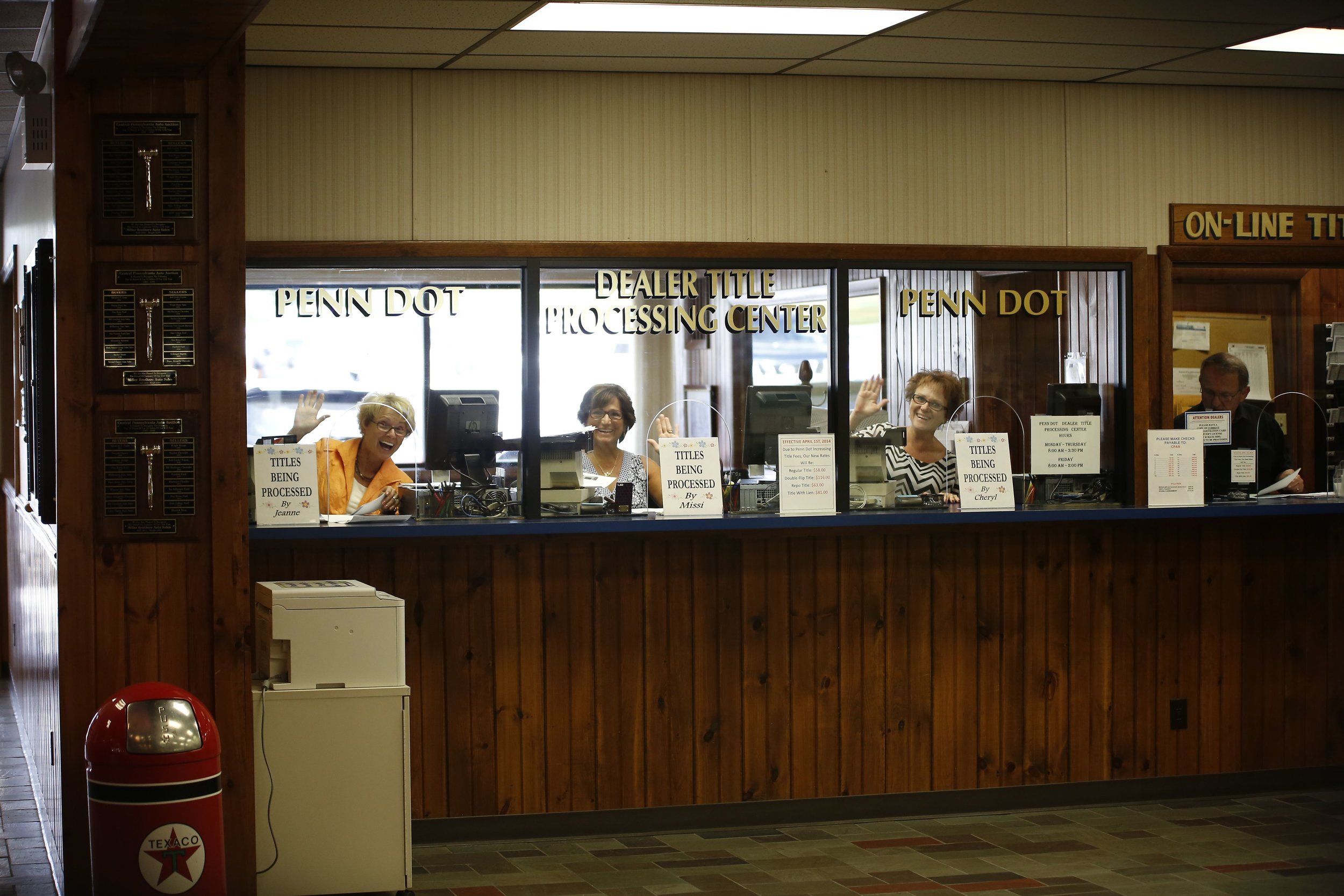For more information on our DMV processing center, contact Cheryl Counsil at 570-726-4300, ext 251 or email her at: ccounsil@cpaautoauction.com